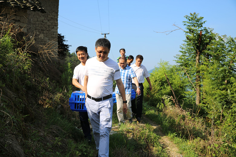 除了山村建基地,湘佳牧業還結合自己多年的養雞帶富實踐,探索出“公司+貧困戶散養石門土雞”模式,發動貧困戶散養國家地理標志保護產品石門土雞,增收脫貧。