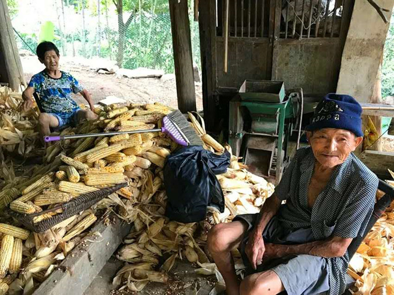 兩人的父母都是80多歲的老人了。見(jiàn)到兩位老人時(shí),兩人正在一間破敗的房子里用手剝著玉米。