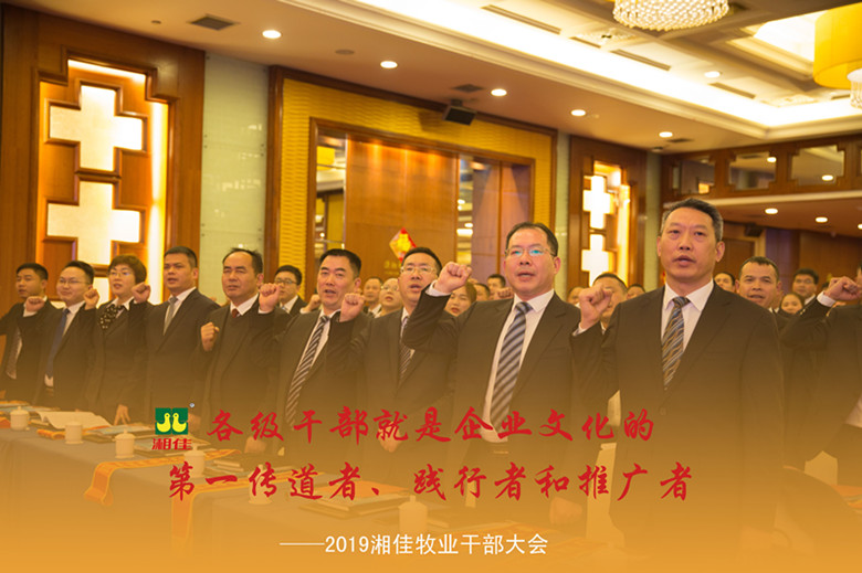 湘佳牧業董事長兼總裁喻自文在2019湘佳干部大會上,發表了《湘佳最偉大的產品是人》的主旨演講。“干部強大了,員工才強大;員工強大了,企業才強大”“干部要做到今日事,今日畢,明日事,今夜思”“領先者,可以只顧自己;領導者,必須顧及他人”……