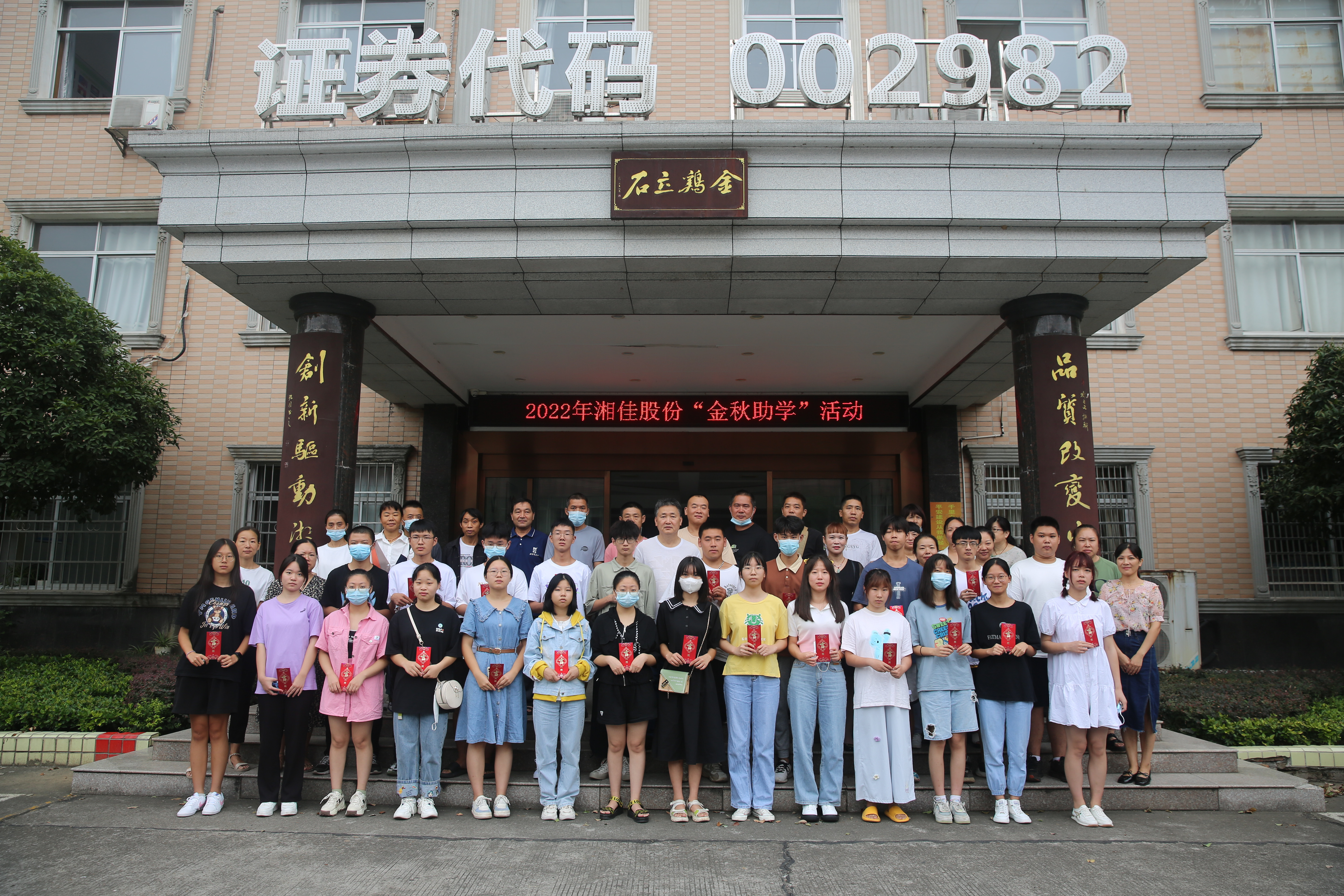 8月28日,在湘佳股份組織黨員干部“捐款抗旱”活動結束后的第三天,湘佳股份又開展了一年一度的“金秋助學”活動,為今年考上大學的42名湘佳員工子女發(fā)放助學金84000元,助力湘佳員工子女圓夢大學。